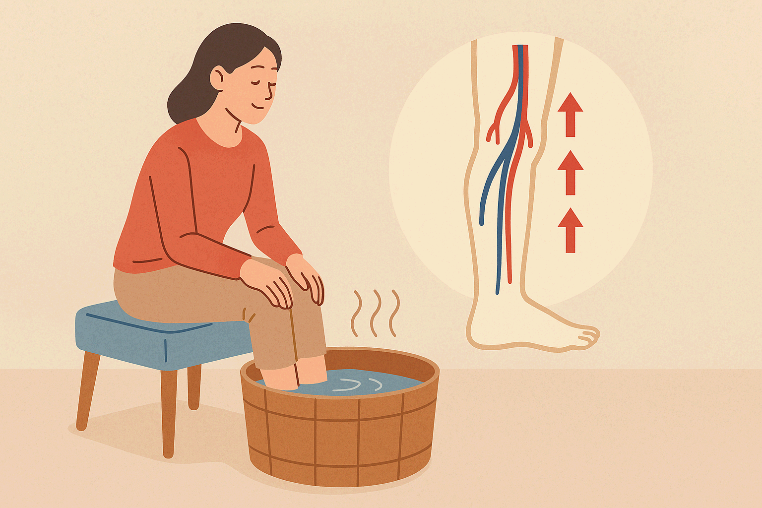 온열 요법도 즉각적인 효과를 볼 수 있는 좋은 방법입니다. 하루 10~15분 정도 38~40도의 따뜻한 물에 발을 담그는 족욕이나, 하체 전체를 담그는 반신욕을 하면 말초혈관이 확장되면서 혈류가 개선됩니다. 다만 물 온도가 너무 뜨거우면 오히려 혈관에 무리를 줄 수 있으니 적정 온도를 유지하는 것이 중요해요. 또한 충분한 수분 섭취는 혈액의 점도를 낮춰 순환을 원활하게 만드는 핵심 요소입니다. 하루 1.5~2리터 이상의 물을 조금씩 나누어 마시는 습관을 들이면 혈액이 끈적해지는 것을 방지할 수 있습니다.